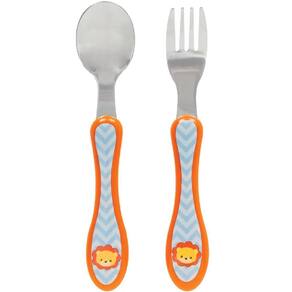 Kit Talher Leãozinho Buba Kit com garfo e talher em aço inoxidável com design anatômico e estampa de leãozinho. O formato anatômico facilita o manuseio pelos pequenos. As pontas arredondadas dos talheres tornam a refeição mais segura e confortável. O aço inoxidável é mais resistente e fácil de limpar Conteúdo da embalagem: 1 garfo + 1 colher estampa leãozinho. Medidas: garfo: 14 x 2 x 1 AxLxP cm; Colher: 14 x 3 x 1 AxLxP cm Blister: 20 x 10 x 1,5 AxLxP cm Composição: Aço inoxidável e Polipropileno. Possui certificação pelo INMETRO. Recomendado para crianças com +6 meses. Garantia de 90 dias contra defeitos de fabricação.