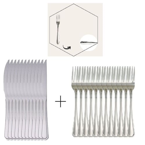 Conjunto Completo para 12 Pessoas: Com 24 peças no total (12 facas e 12 garfos), você terá um jogo completo para servir sua família e convidados com toda a elegância e funcionalidade.