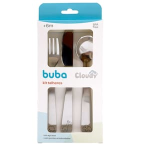 O Kit de Talheres Cloudy da Buba foi desenvolvido em aço inox, com tamanho ideal para as pequenas mãozinhas, unindo praticidade e charme em cada refeição.