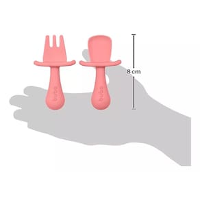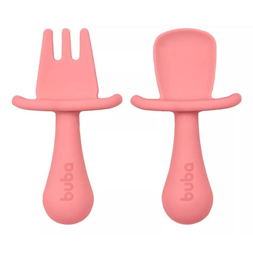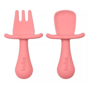 O Kit Talher Silicone da Buba possui um garfo e uma colher super macios e com design anatômico, perfeitos para as gengivas delicadas do bebê. Vem com protetor para impedir que a criança introduza profundamente o talher na boca, ideal para a auto alimentação.