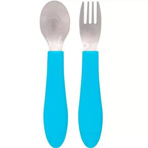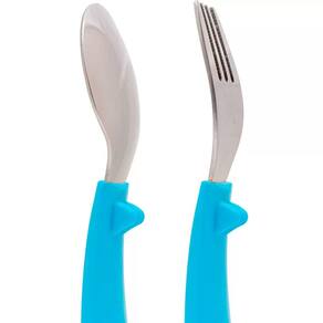 1 Kit Talheres Inox e Cabo Silicone Pandinha Azul 16972 - Buba