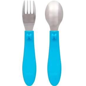 Kit Talheres Inox e Cabo Silicone Pandinha Azul 16972 - Buba - Dorémi Brinquedos