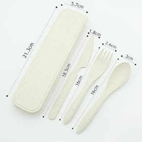 O kit de talheres reutilizáveis são feitos de fibra de Palha de Trigo. O kit contém um garfo, uma colher, uma faca e um estojo para guardar e carregar para o trabalho ou viagens, todos do mesmo material. Os produtos são antibacterianos, sustentáveis, fáceis de limpar, resistentes e possuem uma longa durabilidade.