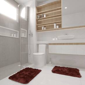 Kit Tapete Banheiro Felpudo Peludo Marrom 40 X 60 Cm