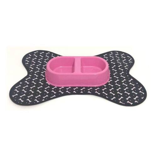 Kit de Tapete Pet, comedouro e bebedouro - Ossinho dupla face Lindo tapetinho, comedouro e bebedouro para os Pets cheios de estilo. Tapetinho para usar embaixo do pratinho de ração e água, para manter tudo limpinho, organizado e ainda decorar o seu cantinho. Possui um excelente acabamento e um belo design, que torna a refeição do animal mais prática e higiênica. Tapete dupla face, feito com tecido 100% gorgurinho, com acabamento em viés, lavável e super prático. Comedouro e bebedouro na cor preto. Medidas aproximadas: tapete 22 cm x 16 cm, comedouro duplo 300 ml, Cor: preto. Seu Pet vai adorar Ideal para Pets de pequeno e médio porte. Marca: Nica pet