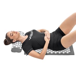 O Tapete e Travesseiro de Acupressão Vollo possuem plásticos pontiagudos com 33 pontos de acupressão cada, que estimulam a circulação para aliviar dores, liberar endorfinas, aumentar a energia e rejuvenescer o corpo.