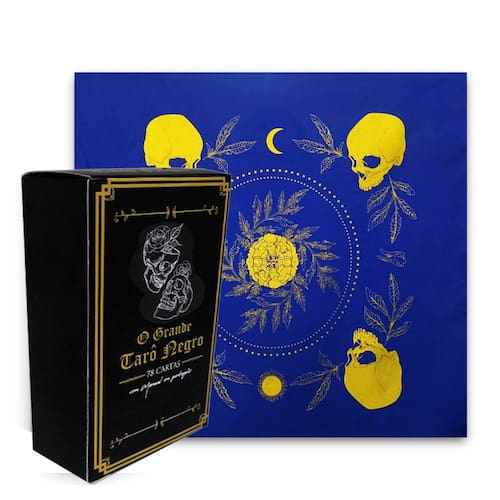 Kit Tarô Toalha Brilho Azul/Dourado e O Grande Taro Negro