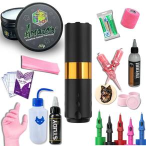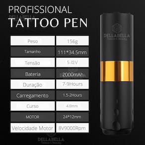 Kit tattoo iniciante completo pen dourada bateria tatuagem Conteúdo do kit: 1- máquina pen: profissional e fácil de usar. 2- bateria: portabilidade garantida 3- tinta preta 30ml: para obras rigorosas. 4- luva nitrílica: proteção total durante a tatuagem. 5- bandagem: cicatrização adequada assegurada. 6- cartucho: precisão e praticidade. 7- vaselina: deslize suavemente da agulha. 8- transfer stencil: desenhos precisos em um instante. 9- papel hectográfico: transforme suas ideias em arte. 10- abaixador de língua: aplicação uniforme sem esforço. 11- batoques: para mistura suas cores favoritas. 12- protetor de máquina: mantenha sua máquina segura 13- pele artificial: treine antes de tatuar de verdade. 14- almotolia: mantenha a limpeza durante o processo. 15- cartucho caneta: perfeito para iniciantes. Principais características: aplicação: tatuagem e . Tensão: ela pode ser projetada para operar em uma ampla faixa de tensão, intermitente de 5 a 12 volts. Isso oferece flexibilidade ao artista para ajustar a máquina de acordo com suas preferências e necessidades específicas de trabalho. Compatibilidade de agulhas: a máquina pen wireless é compatível com uma variedade de configurações de cartuchos, permitindo ao artista explorar diferentes técnicas e estilos de tatuagem. Ela pode suportar tanto cartuchos traçados quanto de sombreamento. Conexão: a máquina pen possui uma bateria integrada que tem autonomia de 6h a 7h de trabalho, dependendo da tensão. Material: a estrutura principal da máquina pen é feita de alumínio de aviação de alta qualidade, o que a torna durável e leve ao mesmo tempo. Peso e dimensões: máquina extremamente leve, pesa apenas 156 gramas, enquanto as dimensões podem estar na faixa de comprimento de cerca de 12 a 13 centímetros e diâmetro de cerca de 2,5 a 3 centímetros. Especificações Peso: 156 gramas Tamanho: 11134,5mm Tensão gama: 5-12v Bateria capacidade: 1800mah Bateria vida: 6-7 horas Carregando o tempo: 1.5-2 horas Viagem: 4.0mm Tamanho do motor: 2412mm : 6 meses. Marca: Não Informado