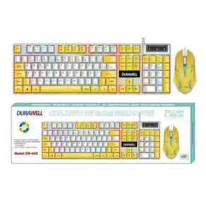 Marca: DURAWELL Modelo: DW-450 Cor: colorida Sistema: Membrana Tipo de conexão: Com Fio Conector: Usb Tipo do cabo usb: Emborrachado Padrão: ABNT2 Quantidade de teclas; 107 Estilo das teclas: Suspenso Acabamento: Plástico Iluminação led Rgb: altera cor automaticamente, sem escolha de cor