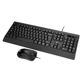 Ambos os dispositivos conectam-se via USB, garantindo uma conexão estável e rápida. O design preto do conjunto complementa uma variedade de ambientes de trabalho e configurações.