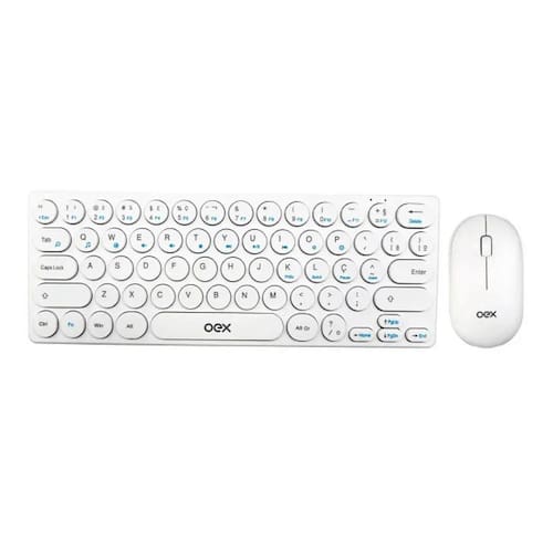 Kit Teclado E Mouse Sem Fio Retrô Oex Tm-409 Abnt2 Português Branco