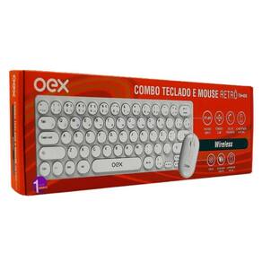 Kit Teclado E Mouse Sem Fio Retrô Oex Tm-409 Abnt2 Português Branco