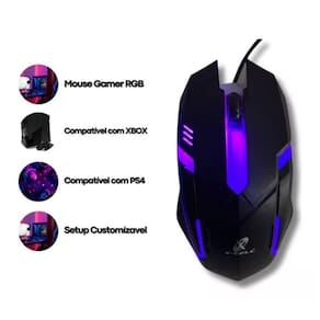 Kit Teclado Rgb Semi Mecânico E Mouse Gamer Iluminado Xc-Cb-05 Teclado - Teclado Gamer LED RGB Semi Mecânico - Padrão brasileiro ABNT2 - Conexão USB - Comprimento do cabo 1.5m Mouse - Mouse Gamer USB - 2400Dpi