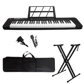 Kit Teclado Musical 61 Teclas Estudante Iniciante Rhythmic 50 + Capa e Suporte em X