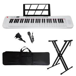 Kit Teclado Musical 61 Teclas Estudante Iniciante Rhythmic 50WH + Capa e Suporte em X
