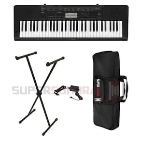 Kit Teclado Musical Casio Ctk-3500, 48 polifonias, 400 timbres, 100 ritmos integrados, 50 ritmos de Dance Music, entrada para fone e pedal sustain,61 teclas no estilo piano com 2 níveis de sensibilidade. Conta com aplicativo Chordana Play que garante muito mais diversão (assista o vídeo para mais informações). Pode ser utilizado com pilhas 6 de tamanho Aa (não inclusas) ou adaptador Ca Ad-E95100L. Kit acompanha ainda um suporte em X para teclado e uma capa para transporte/proteção, fonte e estante para partitura.