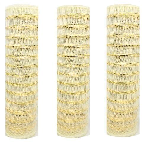 -02 unidades Tela Decoração Natal Fita Tamanho gigante 25cm x 5 metros Creme Fio Dourado Magizi