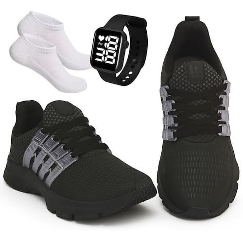 Kit Tênis Academia Masculino + Relógio Digital LED + Meia - 39 - Grafite