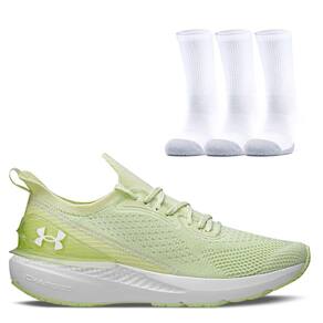Tênis de Corrida Under Armour Charged Quicker e Confeccionado em gáspea retilínea bicolor com elastano, apresentando uma estrutura anatômica similar à de uma meia, se adaptando ao pé e facilitando o calce.Meia Unissex Under Armour Heatgear Crew - Pacote com 3 pares, modelo com tecnologia anti-odor impede o crescimento de micróbios causadores de odor. 97% Poliéster e 3% Elastano. Composição: 67% Algodão, 30% Poliéster e 3% Elastano. Tamanho: M = 36-40.