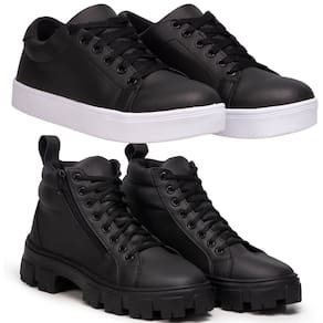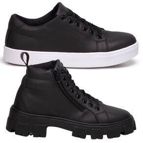 Kit Tênis E Bota Feminina Para Um Guarda-Roupa Versátil, 1 Coturno Preto + 1 Tenis Casual Preto. - 40 - Preto