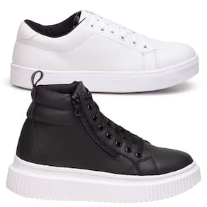 Kit Tênis Feminino Branco Casual E Bota Plataforma Preta Para Um Contraste Moderno E Estiloso. - 38 - Preto