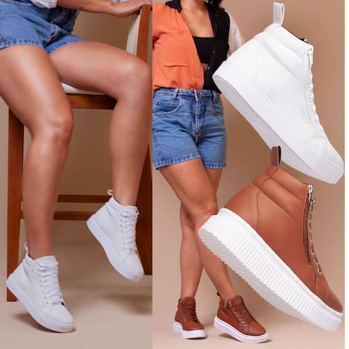 KIT COM DOIS PARES UM PAR BRANCO E UM PAR CARAMELO. = 2 Botas Feminina Estilo Academia Com Solado De Borracha.Descubra o Charme do Conforto para seus treinos ou passeio com nossos coturnos feminino.Características Principais:Cabedal: Sintético.Forro: Tecido Antibacteriano.Palmilha: Confort Eva 4mm.Sola: Borracha Antiderrapante.Altura Da Sola baixa: 3 Centrimetros (branca).Altura Da Sola Plataforma: 5 Centrimetros (caramelo).Metais: Antioxidante.Ajuste: Cadarço Fios De Algodão E Zíper Reforçado.Peso: 0.800g cada par.Atenção na hora de escolher seu tamanho, o Tênis possui FORMA NORMAL, pedir o número que já está acostumado a usar, temos aqui a abaixo uma tabela aproximada de cm da palmilha para usarem como referência.TAMANHO DE PALMILHA.33 - 22.9 cm.34 - 23.2 cm.35 - 24.0 cm.36 - 24.5 cm.37 - 25.0 cm.38 - 26.0 cm.39 - 27.0 cm.40 - 27.5 cm.Não perca a chance de adicionar um toque de elegância e conforto ao seu guarda-roupa. Clique em "Comprar Agora" e experimente a combinação perfeita de estilo e comodidade com nossos Coturnos Femininos. Seu próximo par de sapatos favorito está a apenas um clique de distância!.