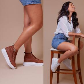 = 2 Botas Feminina Estilo Academia Com Solado De Borracha.Descubra o Charme do Conforto para seus treinos ou passeio com nossos coturnos feminino.Características Principais:Cabedal: Sintético.Forro: Tecido Antibacteriano.Palmilha: Confort Eva 4mm.Sola: Borracha Antiderrapante.Altura Da Sola baixa: 3 Centrimetros (branca).Altura Da Sola Plataforma: 5 Centrimetros (caramelo).Metais: Antioxidante.Ajuste: Cadarço Fios De Algodão E Zíper Reforçado.Peso: 0.800g cada par.Atenção na hora de escolher seu tamanho, o Tênis possui FORMA NORMAL, pedir o número que já está acostumado a usar, temos aqui a abaixo uma tabela aproximada de cm da palmilha para usarem como referência.TAMANHO DE PALMILHA.33 - 22.9 cm.34 - 23.2 cm.35 - 24.0 cm.36 - 24.5 cm.37 - 25.0 cm.38 - 26.0 cm.39 - 27.0 cm.40 - 27.5 cm.Não perca a chance de adicionar um toque de elegância e conforto ao seu guarda-roupa. Clique em "Comprar Agora" e experimente a combinação perfeita de estilo e comodidade com nossos Coturnos Femininos. Seu próximo par de sapatos favorito está a apenas um clique de distância!.
