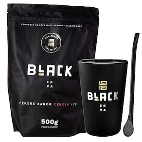 Kit Tereré Erva Cereja Ice Copo Preto E Bomba Black Erva Erva Mate Tereré Black Erva 500g Sabor Cereja E Ice O Tereré possui efeito diurético, que colabora no processo de redução da gordura corporal. A bebida estimula o aumento o gasto energético dos consumidores, por proporcionar maior força muscular e, consequentemente, melhor desempenho nos treinos. Para quem gosta de um sabor marcante e muito refrescante, a erva Cerja Ice possui um aroma e gostinho de cereja incomparável e por muito mais tempo, além de trazer muitos benefícios para sua saúde. Pacote com 500g com sistema zip lock para maior conservação do produto. Modo de Preparo: - Coloque 3/4 de Black Erva na guampa, cuia ou copo. - Incline e acomode a Black Erva sobre um lado da guampa, cuia ou copo. Deixe a bomba no local adequado. - Tome com água gelada a gosto e saboreie sua Black Erva. Consumir com água gelada para melhor aproveito do sabor. ESPECIFICAÇÕES TÉCNICAS: - Marca: Black Erva - Ilexx paraguariensis Erva Mate , Aroma Artificial de Cereja, Aroma Artificial de Menta - Padronização Erva Mate Folha 35% mínimo, outras partes do ramo 65% máximo - Não contém glúten Copo Cuia Para Terere Black Erva Preto Fosco 350ml Para você que quer apreciar uma deliciosa erva mate, sozinho ou com seus amigos, com essa cuia você vai fazer isso no maior estilo A cuia possui a aparência Preta com a estampa da marca Black Erva. Possui a superfície lisa e fácil de limpar. ESPECIFICAÇÕES TÉCNICAS: - Produto com ótimo acabamento - Resistente e com alta durabilidade - Material: Acrílico - Capacidade: 350ml - Altura: 11,5cm - Diâmetro Boca: 8cm - Peso: 60g Bomba Para Tereré E Chimarrão Tradicional Black Erva Preto A Black Erva é o novo conceito para terere no Brasil, com produtos de alta qualidade Essa bomba tradicional e prática possui grande durabilidade e é extremamente bonita. Pode ser Utilizado para o consumo de Erva Mate aonde você estiver: seja entre amigos, no trabalho ou em casa. ESPECIFICAÇÕES TÉCNICAS: - Material de alta qualidade e pintura epóxi um revestimento de alta resistência - É de fácil utilização e limpeza, não acumula cheiro ou resíduos - Anti entupimento - Medidas: 19 x 2 cm - Cor: Preto ITENS INCLUSOS: - 1x Erva Mate Tereré Black Erva 500g Sabor Cereja E Ice - 1x Copo Cuia Para Terere Black Erva Preto Fosco 350ml - 1x Bomba Para Tereré E Chimarrão Tradicional Black Erva Preto