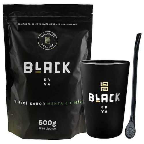 Kit Tereré Erva Menta E Limão + Copo Preto + Bomba Preta Black Erva Erva Mate Tereré Black Erva 500g Sabor Menta E Limão O Tereré possui efeito diurético, que colabora no processo de redução da gordura corporal. A bebida estimula o aumento o gasto energético dos consumidores, por proporcionar maior força muscular e, consequentemente, melhor desempenho nos treinos. Se você gosta de refrescância e sabor inconparável, não pode deixar de provar esse sabor. A erva menta e limão combina o sabor do limão com a deliciosa sensação da hortelã. Pacote com 500g com sistema zip lock para maior conservação do produto. Modo de Preparo: - Coloque 3/4 de Black Erva na guampa, cuia ou copo. - Incline e acomode a Black Erva sobre um lado da guampa, cuia ou copo. Deixe a bomba no local adequado. - Tome com água gelada a gosto e saboreie sua Black Erva. Consumir com água gelada para melhor aproveito do sabor. ESPECIFICAÇÕES TÉCNICAS: - Marca: Black Erva - Ilexx paraguariensis Erva Mate , Aroma Artificial de Menta, Aroma Artificial de Limão - Padronização Erva Mate Folha 35% mínimo, outras partes do ramo 65% máximo - Não contém glúten Copo Cuia Para Terere Black Erva Preto Fosco 350ml Para você que quer apreciar uma deliciosa erva mate, sozinho ou com seus amigos, com essa cuia você vai fazer isso no maior estilo A cuia possui a aparência Preta com a estampa da marca Black Erva. Possui a superfície lisa e fácil de limpar. ESPECIFICAÇÕES TÉCNICAS: - Produto com ótimo acabamento - Resistente e com alta durabilidade - Material: Acrílico - Capacidade: 350ml - Altura: 11,5cm - Diâmetro Boca: 8cm - Peso: 60g Bomba Para Tereré E Chimarrão Tradicional Black Erva Preto A Black Erva é o novo conceito para terere no Brasil, com produtos de alta qualidade Essa bomba tradicional e prática possui grande durabilidade e é extremamente bonita. Pode ser Utilizado para o consumo de Erva Mate aonde você estiver: seja entre amigos, no trabalho ou em casa. ESPECIFICAÇÕES TÉCNICAS: - Material de alta qualidade e pintura epóxi um revestimento de alta resistência - É de fácil utilização e limpeza, não acumula cheiro ou resíduos - Anti entupimento - Medidas: 19 x 2 cm - Cor: Preto ITENS INCLUSOS: - 1x Erva Mate Tereré Black Erva 500g Sabor Menta E Limão - 1x Copo Cuia Para Terere Black Erva Preto Fosco 350ml - 1x Bomba Para Tereré E Chimarrão Tradicional Black Erva Preto Marca: Não Informado