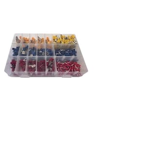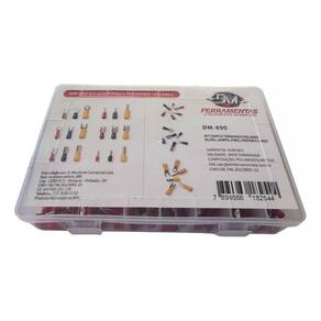 Kit Terminais elétricos ilhos tubolar + pré isolados Olhal, Garfo, Pino e Faston macho e fêmea.Conteúdo:20 peças - Olhal vermelho M5 - Cabos 0,5 até 1,5mm²20 peças - Olhal azul M5 - Cabos 1,5 até 2,5mm²10 peças - Olhal amarelo M5 - Cabos 4 até 6mm²20 peças - Pino vermelho M10 - Cabos 0,5 até 1,5mm²20 peças - Pino azul M10 - Cabos 1,5 até 2,5mm²10 peças - Pino amarelo M13 - Cabos 4 até 6mm²20 peças - Forquilha vermelho M4 - Cabos 0,5 até 1,5mm²20 peças - Forquilha azul M4 - Cabos 1,5 até 2,5mm²10 peças - Forquilha amarelo M5 - Cabos 4 até 6mm²20 peças - Fêmea vermelho 6,3mm pré isolado - Cabos 0,5 até 1,5mm²20 peças - Fêmea azul 6,3mm pré isolado - Cabos 1,5 até 2,5mm²10 peças - Fêmea amarelo 6,3mm pré isolado - Cabos 4 até 6mm²20 peças - Macho vermelho 6,3mm pré isolado - Cabos 0,5 até 1,5mm²20 peças - Macho azul 6,3mm pré isolado - Cabos 1,5 até 2,5mm²10 peças - Macho amarelo 6,3mm pré isolado - Cabos 4 até 6mm²100 peças - Ilhos tubolar vermelho – Cabo 1,5mm²100 peças - Ilhos tubolar azul – Cabo 2,5mm²100 peças - Ilhos tubolar amarelo – Cabo 6mm²1 caixa organizadora com 18 divisóriasMarca: DM Ferramentas e equipamentos automotivosTotal: 550 terminaisGarantia de 6 meses. (3 meses de garantia Legal contra defeito de fabricação e 3 meses de garantia concedido pela DM Ferramentas contra defeitos de fabricação)