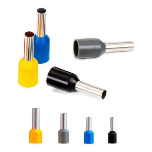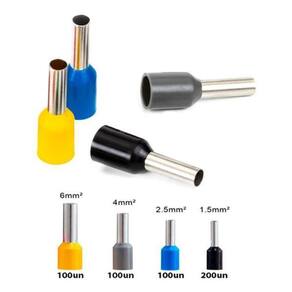 200un - Terminal Ilhós Simples Tubo 1,5mm x 8mm - Preto 100un - Terminal Ilhós Simples Tubo 2,5mm x 10mm - Azul 100un - Terminal Ilhós Simples Tubo 4,0mm x 12mm - Cinza 100un - Terminal Ilhós Simples Tubo 6,0mm x 12mm - Amarelo