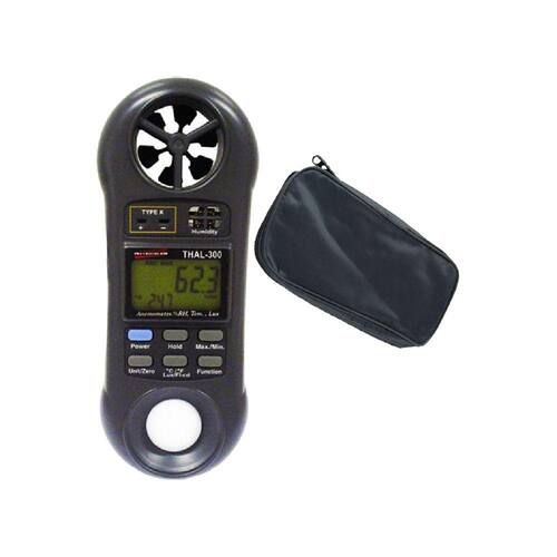 TERMO-HIGRO-ANEMÔMETRO-LUXÍMETRO DIGITAL PORTÁTIL MOD. THAL-300 + ESTOJO MOD. ES-01 P/ DIVERSOS APARELHOS DESCRIÇÃO: Termo-higro-anemômetro-luxímetro digital portátil mod. thal-300 Estojo mod. es-01 p/ diversos aparelhos DESTAQUES: Fotocélula corrigida para a sensibilidade do olho humano e ângulo de incidência. de acordo com a Norma de Higiene Ocupacional NHO 11 ESPECIFICAÇÕES TÉCNICAS: TERMO-HIGRO THAL-300: Display de Cristal Líquido (LCD): Multi-Canal com dígitos de 8mm de altura Escalas: Velocidade: 0,4 a 30,0m/s; 1,4 a 108,0Km/h; 0,8 a 58,3nós; 0,9 a 67,0milhas/h; 80 a 5910pés/min; Resolução: 0.1 m/s; 1 ft/min; 0.1 km/h; 0.1 mile/h; 0.1 knots Precisão: £ 20 m/s: ± 3% da escala completa > 20 m/s: ± 4% da escala completa Umidade: 10 a 95% RH Resolução: 0.1% RH Precisão: < 70% RH: ± 4% RH ³ 70% RH: ± 4% da leitura + 1.2% RH Temperatura (Termistor): 0 a 50ºC / 32 a 122ºF Resolução: 0.1ºC / 0.1ºF Precisão: ± 1.2ºC / ± 2.5ºF Temperatura (Tipo K): -100 a 1300ºC / -148 a 2372ºF Resolução: 0.1ºC / 0.1ºF Precisão: ± 1% da leitura + 1ºC ± 1% da leitura + 2ºF Tipo de Luz medida: Todas as luzes visíveis (exceto LED) Luminosidade: 0 a 20,000 Lux / 0 a 2,000Fc Resolução: 1 Lux / 1 Ft-cd Precisão: ± 5% da leitura ± 8 dígitos Sensores de luminosidade, velocidade do ar e umidade incorporados ao aparelho Memória: Máxima e Mínima Ajuste de zero automático Data Hold: Congela a leitura no Display Temperatura de Operação: 0 a 50ºC Umidade de Operação: Máx. 80% RH Alimentação: 1 Bateria de 9V (não incluso) Dimensões / Peso: 156 x 60 x 33mm / 160g ESTOJO ES-01: Material: Estojo de vinil com zíper Cores: Preto Dimensões: 115 x 240 x 40mm ACESSÓRIOS FORNECIDOS: Termo-higro-anemômetro-luxímetro digital portátil mod. thal-300 Estojo mod. es-01 p/ diversos aparelhos Manual de instruções