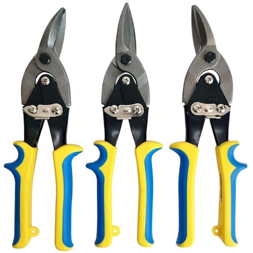 Kit Alicate Tesoura Chapa Aviação 10 Pol. Profissional Guepar A Tesoura Aviação é ideal para trabalhos que precisem de uma tesoura robusta sem perder a leveza e a praticidade. Indicada para cortes retos em chapas em geral. Pode ser utilizada para cortar alumínio, cobre, vinil, papelão, couro, entre outros. - Marca: Guepar - Referência: GTC-5 - 1 Tesoura de Chapa de Corte Direito - 1 Tesoura de Chapa de Corte Esquerdo - 1 Tesoura de Chapa de Corte Reto - Tamanho: 10 250mm - Linha profissional - Corpo em aço cromo vanádio - Cabo plástico emborrachado e ergonômico - Indicada para cortes retos em chapas em geral. Pode ser utilizada para cortar alumínio, cobre, vinil, papelão, couro, entre outros. - Superfície afiada e áspera que previne o escorregamento da peça ao mesmo tempo em que facilita o corte - Conformidade / Padrão: Ansi B107.11M - Peso bruto de cada alicate: 450 gramas - : 90 dias Marca: Não Informado