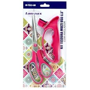 Tesoura de costura cabo emborrachado + amolador portátil.