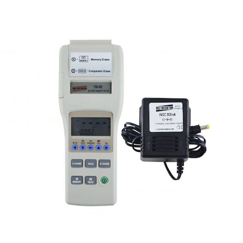 KIT TESTADOR DE BATERIA MOD.TB-50 DE 0 A 500AH COM DATALOGGER + ADAPTADOR MOD AC-100 AC/DC 9V 300MA COMPATÍVEL COM DIVERSOS EQUIPAMENTOS DESCRIÇÃO: Testador de bateria mod.tb-50 de 0 a 500ah com datalogger ESPECIFICAÇÕES TÉCNICAS: Display: LCD Capacidade da bateria: 0 a 500 Ah Resistência: Escala: 40m?, 400m?, 4?, 40? Resolução: 10µ?, 100µ?, 1m?, 10m? Precisão: ± (1% da leitura + 8 dígitos) Condições de Medições: Corrente: 50mA, 5mA, 500µA, 50µA Frequência: 1kHz ± 10% Voltagem DC: Escala: 4V, 40V Resolução: 1mV, 10mV Precisão: ± (0,1 % da leitura ± 6 dígitos) Memória de dados manua: 999 conjuntos de dados Memória datalogger: 6000 dados Memória: 99 conjuntos de dados Ambiente de operação: 0°C a 50°C com 80% UR ou menos, sem condensação Voltagem de entrada máxima: 50V DC Interface serial: RS-232 Auto power off: Desliga automaticamente após 30 min. Funções: Ajuste zero, display travado e função beep Alimentação: 6 pilhas AA de 1,5V (Alcalinas) Dimensões: aprox. 250 x 100 x 45mm Peso: 500g (incluindo as pilhas) ACESSÓRIOS FORNECIDOS: Testador bateria TB-50 Adaptador AC-100 AC/DC 9V 300MA Ponta de prova tipo jacaré Cabo RS-232 Software Pilhas Estojo para transporte Manual de instruções