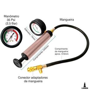 Com ferramentas e acessórios úteis para proprietários de veículos e mecânicos que desejam manter o sistema de arrefecimento em bom funcionamento, o Kit contém uma bomba com manômetro de 35 Psi (2,5 Bar), permitindo que você pressurize o sistema de arrefecimento e identifique vazamentos com precisão. Isso ajuda a localizar e solucionar problemas rapidamente, evitando danos maiores ao motor..