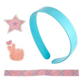 São 2 modelos de stickers diferentes, 1 tiara rosa para colar a faixa de adesivo e ficar ainda mais fashion! Junto com os acessórios, vem também diferentes cores de diamantes, uma bandeja, caneta coletora e gel para a criança poder fazer os próprios stickers e tiara.