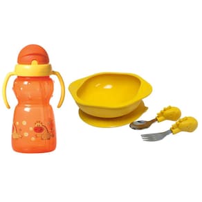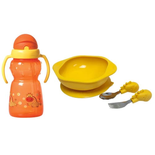 Temos o conjunto completo para ajudar nesse momento: o Kit com Tigela e Primeiro Garfo e Colher da Marcus & Marcus.