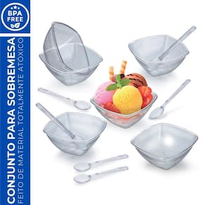 Kit Tigela Pote Sobremesa Crista c/ Talheres Acrílico 12 Peças - diversos Resistente Conjunto Jogo Multiuso - PANAMI