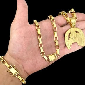 Kit Tijolinho 10mm + Pingente Ferradura Banhado a Ouro Detalhes do Produto: Material: ligas metálicas de alta qualidade, especialmente tratadas para fixação e absorção do ouro, com acabamento em verniz protetor. Aparência: visual idêntico ao ouro maciço. Produção: artesanal, com atenção meticulosa aos detalhes. Banho: 10 camadas espessas de ouro 18k, finalizadas com verniz antialérgico . Elos: soldados varia conforme o modelo . Pedras: zircônias brilhantes cravejadas quando aplicável . Tamanhos Disponíveis: Cordões Masculinos: 70cm padrão e 60cm sob consulta/Pedido Via Chat . Cordões Femininos: 50cm padrão e 45cm sob consulta/Pedido Via Chat . Pulseiras: 21cm padrão ; tamanhos de 18cm a 23cm sob consulta/Pedido Via Chat. Pingentes: conforme imagens; consulte para mais detalhes via chat. Espessuras Recomendadas para Cordões / Pingentes: P: 1mm a 4mm M: 4mm a 8mm G: 6mm a 13mm Gg: 12mm a 18mm Incluso na Compra: Saquinho de organza para armazenamento seguro. Caixa elegante, perfeita para presente. Cupom de desconto para a próxima compra. Flyer com outros produtos da coleção. Carta de agradecimento personalizada. Adesivo da marca ToJoia18k. Informações Adicionais: : 6 meses termos acompanham o produto . Devolução: 7 dias para devolução sem questionamentos. Envio: despacho em até 24 horas úteis após confirmação do pagamento. Cuidados com a Peça: Evite contato com produtos químicos; aguarde o perfume secar antes de usar. Evite contato com shampoo, condicionadores e suor excessivo. Armazene em local seco, preferencialmente no saquinho de organza fornecido. Uso no mar e piscina é permitido; lave com água corrente e sabão neutro após. Por que Escolher a ToJoia18k Semi-joias luxuosas que combinam estilo, qualidade e sofisticação. Banho espesso de ouro 18k, garantindo brilho duradouro e acabamento impecável. Design exclusivo e produção artesanal, perfeitos para qualquer ocasião. Materiais premium que asseguram durabilidade. Ao escolher uma semi-joia ToJoia18k, você investe em qualidade, elegância e uma experiência única. Aguardamos sua compra Observação: pode ocorrer variação no fecho raramente . Imagens reais, sem edição. Qualquer dúvida, estamos à disposição para esclarecimentos.