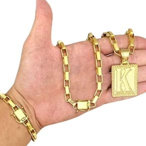 Kit Tijolinho 10mm + Pingente Letra Banhado a Ouro Detalhes do Produto: Material: ligas metálicas de alta qualidade, especialmente tratadas para fixação e absorção do ouro, com acabamento em verniz protetor. Aparência: visual idêntico ao ouro maciço. Produção: artesanal, com atenção meticulosa aos detalhes. Banho: 10 camadas espessas de ouro 18k, finalizadas com verniz antialérgico . Elos: soldados varia conforme o modelo . Pedras: zircônias brilhantes cravejadas quando aplicável . Tamanhos Disponíveis: Cordões Masculinos: 70cm padrão e 60cm sob consulta/Pedido Via Chat . Cordões Femininos: 50cm padrão e 45cm sob consulta/Pedido Via Chat . Pulseiras: 21cm padrão ; tamanhos de 18cm a 23cm sob consulta/Pedido Via Chat. Pingentes: conforme imagens; consulte para mais detalhes via chat. Espessuras Recomendadas para Cordões / Pingentes: P: 1mm a 4mm M: 4mm a 8mm G: 6mm a 13mm Gg: 12mm a 18mm Incluso na Compra: Saquinho de organza para armazenamento seguro. Caixa elegante, perfeita para presente. Cupom de desconto para a próxima compra. Flyer com outros produtos da coleção. Carta de agradecimento personalizada. Adesivo da marca ToJoia18k. Informações Adicionais: : 6 meses termos acompanham o produto . Devolução: 7 dias para devolução sem questionamentos. Envio: despacho em até 24 horas úteis após confirmação do pagamento. Cuidados com a Peça: Evite contato com produtos químicos; aguarde o perfume secar antes de usar. Evite contato com shampoo, condicionadores e suor excessivo. Armazene em local seco, preferencialmente no saquinho de organza fornecido. Uso no mar e piscina é permitido; lave com água corrente e sabão neutro após. Por que Escolher a ToJoia18k Semi-joias luxuosas que combinam estilo, qualidade e sofisticação. Banho espesso de ouro 18k, garantindo brilho duradouro e acabamento impecável. Design exclusivo e produção artesanal, perfeitos para qualquer ocasião. Materiais premium que asseguram durabilidade. Ao escolher uma semi-joia ToJoia18k, você investe em qualidade, elegância e uma experiência única. Aguardamos sua compra Observação: pode ocorrer variação no fecho raramente . Imagens reais, sem edição. Qualquer dúvida, estamos à disposição para esclarecimentos. Marca: Não Informado