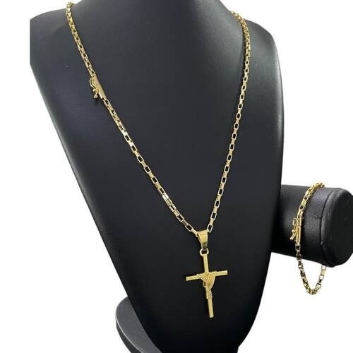 Kit Tijolinho 4mm + Cruz Amarrada Banhado a Ouro Detalhes do Produto: Material: ligas metálicas de alta qualidade, especialmente tratadas para fixação e absorção do ouro, com acabamento em verniz protetor. Aparência: visual idêntico ao ouro maciço. Produção: artesanal, com atenção meticulosa aos detalhes. Banho: 10 camadas espessas de ouro 18k, finalizadas com verniz antialérgico . Elos: soldados varia conforme o modelo . Pedras: zircônias brilhantes cravejadas quando aplicável . Tamanhos Disponíveis: Cordões Masculinos: 70cm padrão e 60cm sob consulta/Pedido Via Chat . Cordões Femininos: 50cm padrão e 45cm sob consulta/Pedido Via Chat . Pulseiras: 21cm padrão ; tamanhos de 18cm a 23cm sob consulta/Pedido Via Chat. Pingentes: conforme imagens; consulte para mais detalhes via chat. Espessuras Recomendadas para Cordões / Pingentes: P: 1mm a 4mm M: 4mm a 8mm G: 6mm a 13mm Gg: 12mm a 18mm Incluso na Compra: Saquinho de organza para armazenamento seguro. Caixa elegante, perfeita para presente. Cupom de desconto para a próxima compra. Flyer com outros produtos da coleção. Carta de agradecimento personalizada. Adesivo da marca ToJoia18k. Informações Adicionais: : 6 meses termos acompanham o produto . Devolução: 7 dias para devolução sem questionamentos. Envio: despacho em até 24 horas úteis após confirmação do pagamento. Cuidados com a Peça: Evite contato com produtos químicos; aguarde o perfume secar antes de usar. Evite contato com shampoo, condicionadores e suor excessivo. Armazene em local seco, preferencialmente no saquinho de organza fornecido. Uso no mar e piscina é permitido; lave com água corrente e sabão neutro após. Por que Escolher a ToJoia18k Semi-joias luxuosas que combinam estilo, qualidade e sofisticação. Banho espesso de ouro 18k, garantindo brilho duradouro e acabamento impecável. Design exclusivo e produção artesanal, perfeitos para qualquer ocasião. Materiais premium que asseguram durabilidade. Ao escolher uma semi-joia ToJoia18k, você investe em qualidade, elegância e uma experiência única. Aguardamos sua compra Observação: pode ocorrer variação no fecho raramente . Imagens reais, sem edição. Qualquer dúvida, estamos à disposição para esclarecimentos. Marca: Não Informado Ean: 7898938392723