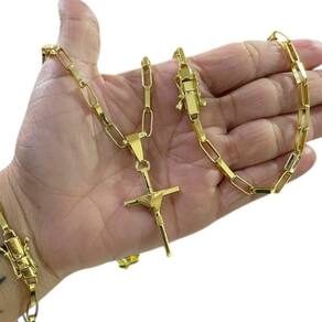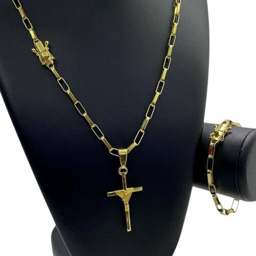 Kit Tijolinho 6mm + Cruz Fio - Banhado a Ouro Detalhes do Produto: Material: ligas metálicas de alta qualidade, especialmente tratadas para fixação e absorção do ouro, com acabamento em verniz protetor. Aparência: visual idêntico ao ouro maciço. Produção: artesanal, com atenção meticulosa aos detalhes. Banho: 10 camadas espessas de ouro 18k, finalizadas com verniz antialérgico . Elos: soldados varia conforme o modelo . Pedras: zircônias brilhantes cravejadas quando aplicável . Tamanhos Disponíveis: Cordões Masculinos: 70cm padrão e 60cm sob consulta/Pedido Via Chat . Cordões Femininos: 50cm padrão e 45cm sob consulta/Pedido Via Chat . Pulseiras: 21cm padrão ; tamanhos de 18cm a 23cm sob consulta/Pedido Via Chat. Pingentes: conforme imagens; consulte para mais detalhes via chat. Espessuras Recomendadas para Cordões / Pingentes: P: 1mm a 4mm M: 4mm a 8mm G: 6mm a 13mm Gg: 12mm a 18mm Incluso na Compra: Saquinho de organza para armazenamento seguro. Caixa elegante, perfeita para presente. Cupom de desconto para a próxima compra. Flyer com outros produtos da coleção. Carta de agradecimento personalizada. Adesivo da marca ToJoia18k. Informações Adicionais: : 6 meses termos acompanham o produto . Devolução: 7 dias para devolução sem questionamentos. Envio: despacho em até 24 horas úteis após confirmação do pagamento. Cuidados com a Peça: Evite contato com produtos químicos; aguarde o perfume secar antes de usar. Evite contato com shampoo, condicionadores e suor excessivo. Armazene em local seco, preferencialmente no saquinho de organza fornecido. Uso no mar e piscina é permitido; lave com água corrente e sabão neutro após. Por que Escolher a ToJoia18k Semi-joias luxuosas que combinam estilo, qualidade e sofisticação. Banho espesso de ouro 18k, garantindo brilho duradouro e acabamento impecável. Design exclusivo e produção artesanal, perfeitos para qualquer ocasião. Materiais premium que asseguram durabilidade. Ao escolher uma semi-joia ToJoia18k, você investe em qualidade, elegância e uma experiência única. Aguardamos sua compra Observação: pode ocorrer variação no fecho raramente . Imagens reais, sem edição. Qualquer dúvida, estamos à disposição para esclarecimentos. Marca: Não Informado