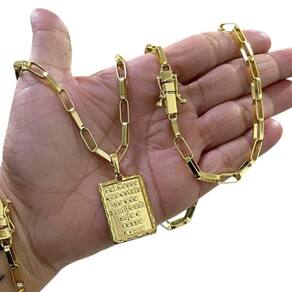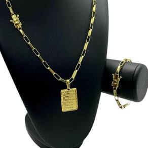 Kit Tijolinho 6mm + Pai Nosso Banhado a Ouro Detalhes do Produto: Material: ligas metálicas de alta qualidade, especialmente tratadas para fixação e absorção do ouro, com acabamento em verniz protetor. Aparência: visual idêntico ao ouro maciço. Produção: artesanal, com atenção meticulosa aos detalhes. Banho: 10 camadas espessas de ouro 18k, finalizadas com verniz antialérgico . Elos: soldados varia conforme o modelo . Pedras: zircônias brilhantes cravejadas quando aplicável . Tamanhos Disponíveis: Cordões Masculinos: 70cm padrão e 60cm sob consulta/Pedido Via Chat . Cordões Femininos: 50cm padrão e 45cm sob consulta/Pedido Via Chat . Pulseiras: 21cm padrão ; tamanhos de 18cm a 23cm sob consulta/Pedido Via Chat. Pingentes: conforme imagens; consulte para mais detalhes via chat. Espessuras Recomendadas para Cordões / Pingentes: P: 1mm a 4mm M: 4mm a 8mm G: 6mm a 13mm Gg: 12mm a 18mm Incluso na Compra: Saquinho de organza para armazenamento seguro. Caixa elegante, perfeita para presente. Cupom de desconto para a próxima compra. Flyer com outros produtos da coleção. Carta de agradecimento personalizada. Adesivo da marca ToJoia18k. Informações Adicionais: : 6 meses termos acompanham o produto . Devolução: 7 dias para devolução sem questionamentos. Envio: despacho em até 24 horas úteis após confirmação do pagamento. Cuidados com a Peça: Evite contato com produtos químicos; aguarde o perfume secar antes de usar. Evite contato com shampoo, condicionadores e suor excessivo. Armazene em local seco, preferencialmente no saquinho de organza fornecido. Uso no mar e piscina é permitido; lave com água corrente e sabão neutro após. Por que Escolher a ToJoia18k Semi-joias luxuosas que combinam estilo, qualidade e sofisticação. Banho espesso de ouro 18k, garantindo brilho duradouro e acabamento impecável. Design exclusivo e produção artesanal, perfeitos para qualquer ocasião. Materiais premium que asseguram durabilidade. Ao escolher uma semi-joia ToJoia18k, você investe em qualidade, elegância e uma experiência única. Aguardamos sua compra Observação: pode ocorrer variação no fecho raramente . Imagens reais, sem edição. Qualquer dúvida, estamos à disposição para esclarecimentos. Marca: Não Informado