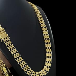 Kit Tijolinho Duplo Banhado a Ouro 18K Detalhes do Produto: Material: ligas metálicas de alta qualidade, especialmente tratadas para fixação e absorção do ouro, com acabamento em verniz protetor. Aparência: visual idêntico ao ouro maciço. Produção: artesanal, com atenção meticulosa aos detalhes. Banho: 10 camadas espessas de ouro 18k, finalizadas com verniz antialérgico . Elos: soldados varia conforme o modelo . Pedras: zircônias brilhantes cravejadas quando aplicável . Tamanhos Disponíveis: Cordões Masculinos: 70cm padrão e 60cm sob consulta/Pedido Via Chat . Cordões Femininos: 50cm padrão e 45cm sob consulta/Pedido Via Chat . Pulseiras: 21cm padrão ; tamanhos de 18cm a 23cm sob consulta/Pedido Via Chat. Pingentes: conforme imagens; consulte para mais detalhes via chat. Espessuras Recomendadas para Cordões / Pingentes: P: 1mm a 4mm M: 4mm a 8mm G: 6mm a 13mm Gg: 12mm a 18mm Incluso na Compra: Saquinho de organza para armazenamento seguro. Caixa elegante, perfeita para presente. Cupom de desconto para a próxima compra. Flyer com outros produtos da coleção. Carta de agradecimento personalizada. Adesivo da marca ToJoia18k. Informações Adicionais: : 6 meses termos acompanham o produto . Devolução: 7 dias para devolução sem questionamentos. Envio: despacho em até 24 horas úteis após confirmação do pagamento. Cuidados com a Peça: Evite contato com produtos químicos; aguarde o perfume secar antes de usar. Evite contato com shampoo, condicionadores e suor excessivo. Armazene em local seco, preferencialmente no saquinho de organza fornecido. Uso no mar e piscina é permitido; lave com água corrente e sabão neutro após. Por que Escolher a ToJoia18k Semi-joias luxuosas que combinam estilo, qualidade e sofisticação. Banho espesso de ouro 18k, garantindo brilho duradouro e acabamento impecável. Design exclusivo e produção artesanal, perfeitos para qualquer ocasião. Materiais premium que asseguram durabilidade. Ao escolher uma semi-joia ToJoia18k, você investe em qualidade, elegância e uma experiência única. Aguardamos sua compra Observação: pode ocorrer variação no fecho raramente . Imagens reais, sem edição. Qualquer dúvida, estamos à disposição para esclarecimentos. Marca: Não Informado