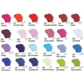 Tinta acrílica de super cobertura. Ideal para trabalhos de artesanato. Pode ser aplicada em diversos materiais como: madeira, papel, cerâmica, isopor, gesso, couro, cortiça, vidro e PET (preparados com Primer Acrilex)