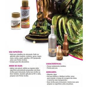 Tinta ideal para trabalhos de artesanato. Pode ser aplicada sobre madeira, cerâmica, gesso, isopor, couro, cortiça, papel, papelão e PET (preparado antes com Primer Acrilex). Sempre para fins decorativos.