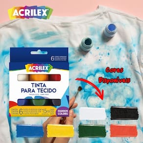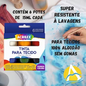 Transforme sua criatividade em obras-primas vibrantes com o Kit de Tinta de Tecido Acrilex de 6 Cores!