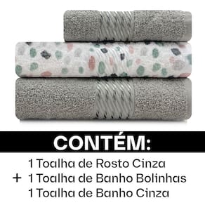 Este Kit Contém: 1 - Toalha de Rosto (50cm x 80cm) 2 - Toalhas de Banho (70cm x 140cm)