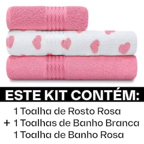 Este Kit Contém: 1 - Toalha de Rosto (50cm x 80cm) 2 - Toalhas de Banho (70cm x 140cm)
